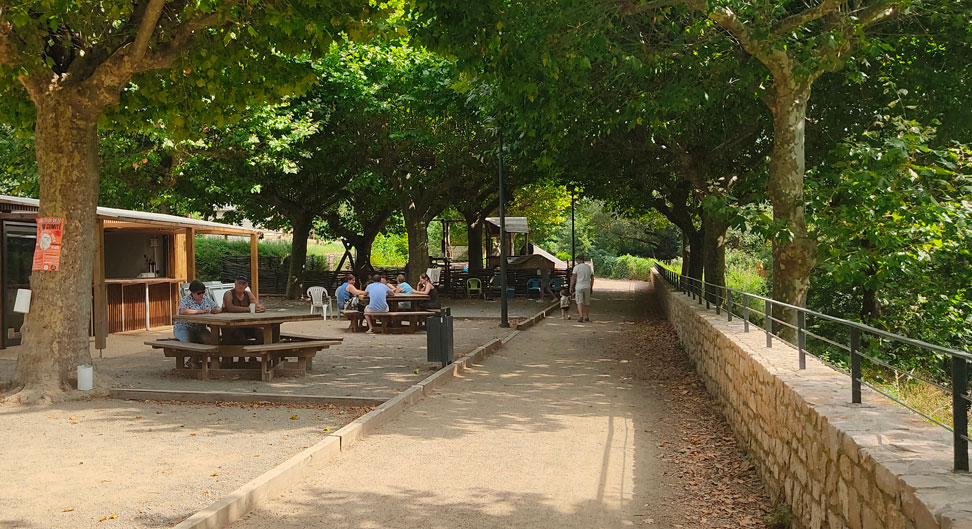 Le site se situe aux abords du Tarnon, au débouché d’une promenade très appréciée des floracois en bord de cours d’eau, sur le versant ensoleillé de la commune. Le projet propose un espace de pétanque avec un petit local associé, une aire de jeux en bois, des tables de pique-nique, une fontaine à boire, et des sanitaires. Le tout prend place sous les platanes existants.