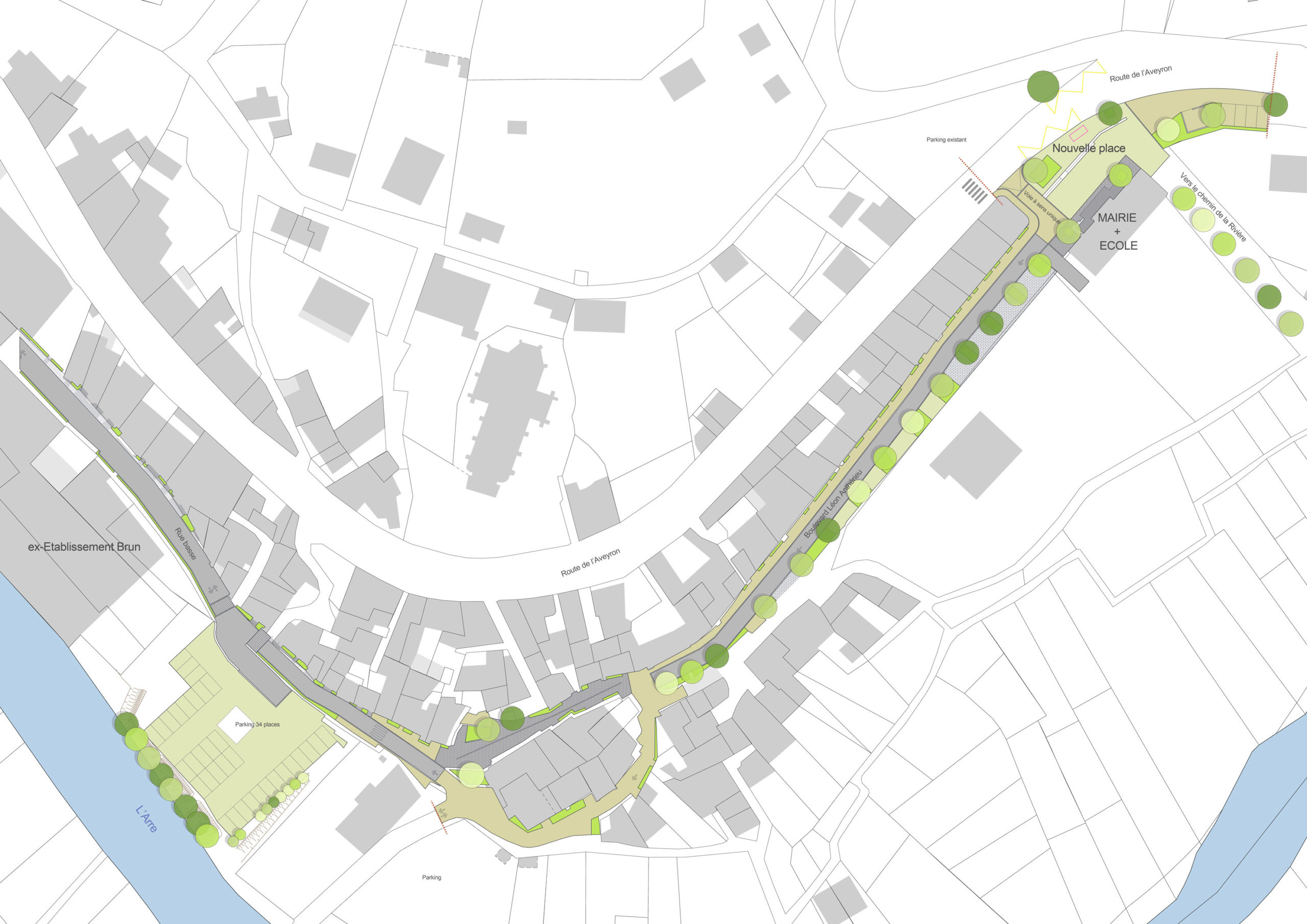 La commune d’Arre se situe à environ 10km de l’Ouest du Vigan. La topographie de la commune est caractéristique des vallées et causses cévenols, avec un village «rue» typique en long. Situé à l’écart  des grands axes de circulation, le secteur à requalifier n’est pas le support d’une forte fréquentation. Malgré tout, l’usage de l’espace est principalement dédié aux véhicules, avec un traitement en enrobé. La place centrale de la Mairie est aujourd’hui à majorité minérale et accueille également l’école,  l’agence  postale  et  la  bibliothèque  de  la  commune et constitue le point central des équipements publics.